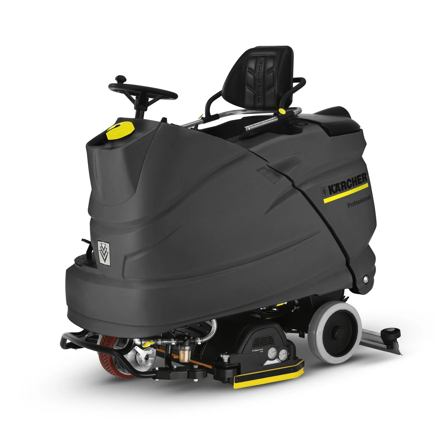 Ride-on battery powered scrubber dryers